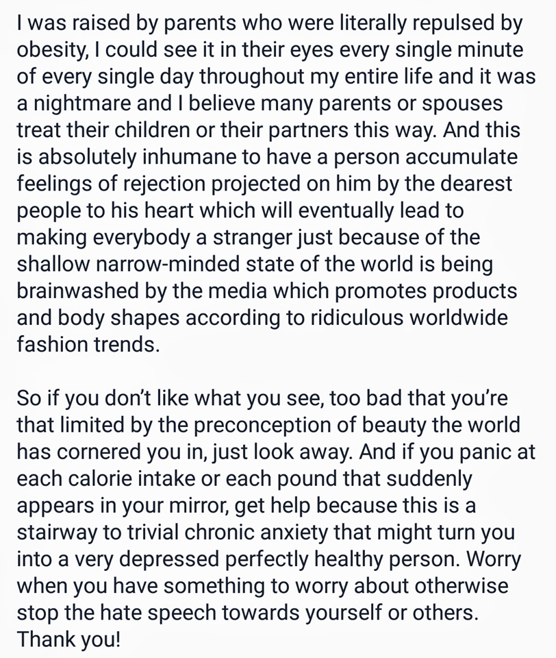 Facebook user Nadine Badrawy has decided to finally address all the body and fat shamming that happens in Egypt, with a brave and confrontational tone.