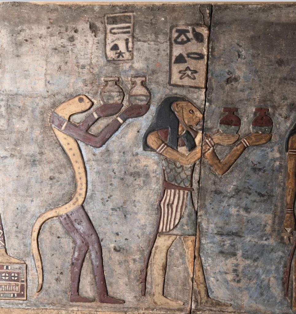 As for the German side, Christian Leitz, the mission’s leader, reported that several signs showing Egyptian gods and creatures, such as snakes and crocodiles, were also an important part of the discovery. There were pictures of a serpent with a ram head, a bird with a crocodile head, and a serpent tail.