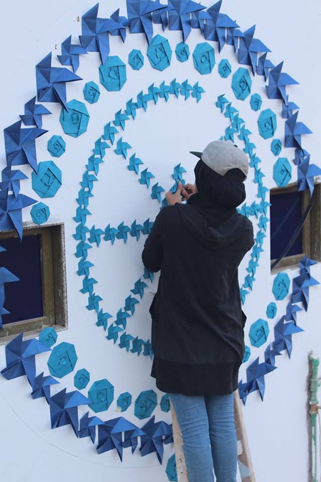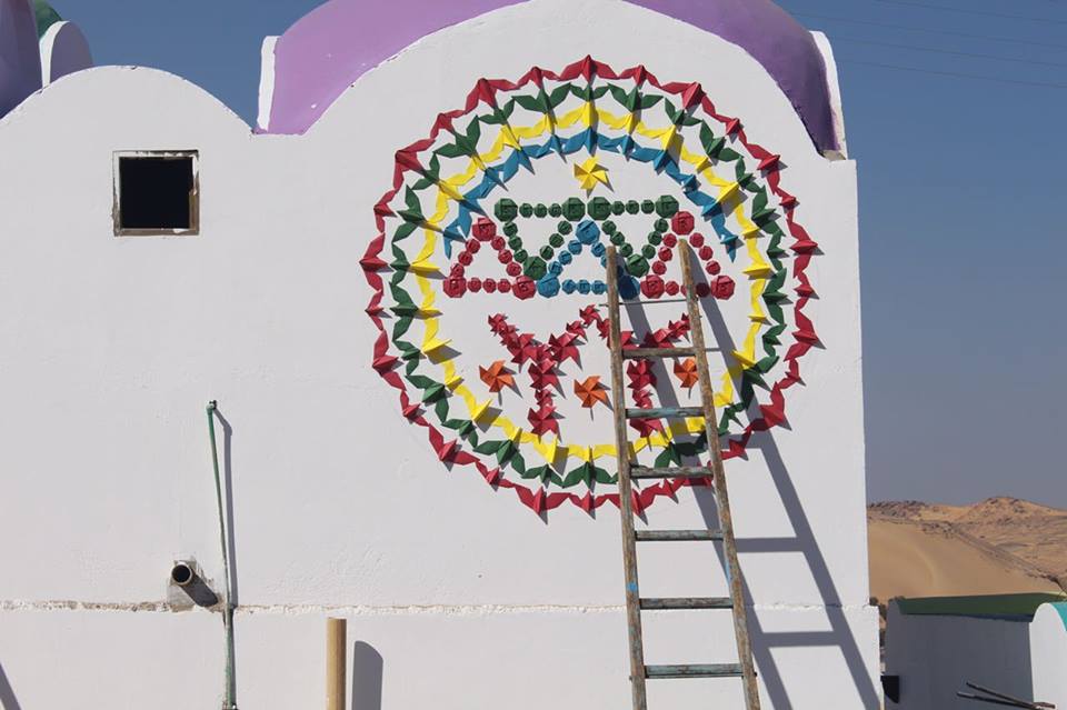 Soon, photos of young Egyptians surfaced on Facebook while creating the biggest origami wall in the Middle East. Five enthusiastic artists, Yasser Ayman Noha Abd El-Wahab Amira Said Khaled Ahmed Amin and Abdalla ElRuby, covered a 40 meters wall, with 2000 origami shapes, in seven days. The results are breathtaking. Ashri Narty hotel is definitely on our bucket list.