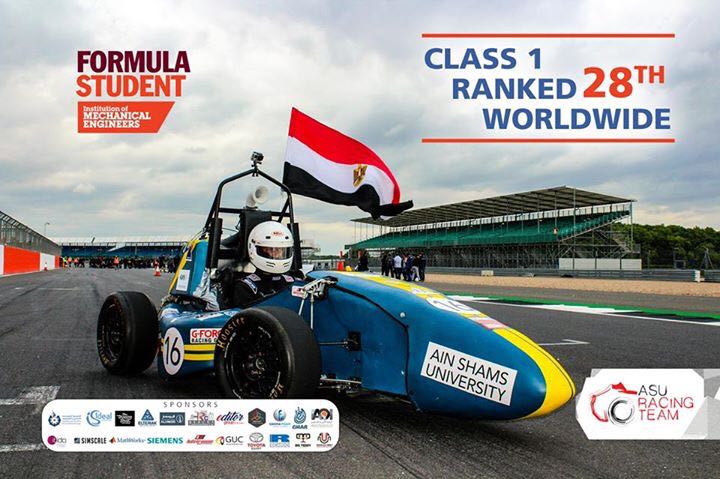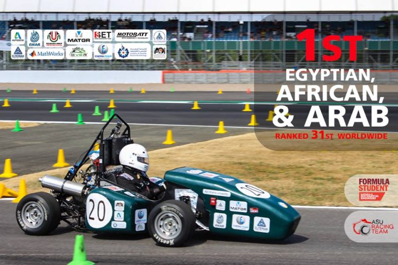 Students of Egypt’s Faculty of Engineering at Ain Shams University won, on Sunday, the first place at the Cost and Manufacturing category at Formula Student global racing competition, held in UK. The ASU racing team ranked the 31st with a total score of 285,8 becoming the first Egyptian, African and Arab team to take the first position.