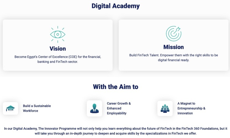 This program will launch in the first quarter of 2023 in collaboration with the Egyptian Banking Institute and the Centre for Finance, Technology, and Entrepreneurship; becoming a globally recognized fintech hub that produces the next generation of financial services, talent, and innovative development. The program will also include online workshops presented by esteemed academics and leading fintech experts. The academy will also empower employees to transfer their new skills directly to their jobs.