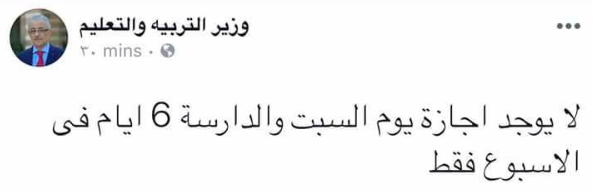 Ministry of Education spokesman, Ahmed Khairy, soon came to the rescue and denied all rumors about Saturday’s status, adding that Dr. Tarek Shawky doesn’t have any Facebook accounts other than his personal one.