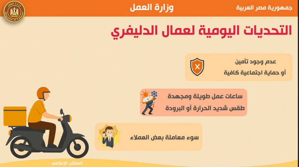 Starting September 1st, delivery workers in Egypt will officially be protected under Labor Law No. 14 of 2025. To support this rollout, the Ministry of Labor has launched the “Your Safety Matters” campaign, announcing a series of new measures to regulate the sector and guarantee workers’ rights.