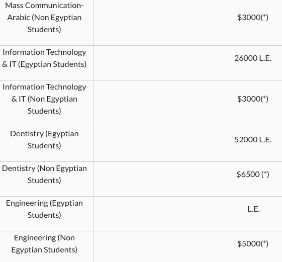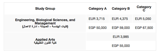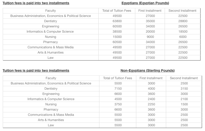 The tuition rate will be at a fixed dollar rate at EGP 9.8 for undergraduate Egyptian students, and USD 1.213 for international students per credit hour. For ELI, Egyptian students will pay EGP 136,406 and non-Egyptian students will pay USD 14,556.