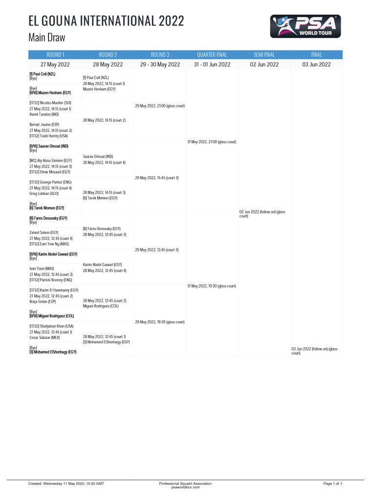 Therefore, both the men’s and women’s draws this year will include some exciting matchups that will keep you on the edge of your seat. For example, current world number one Paul Coll of New Zealand will face Egypt’s Mazen Hesham, who is now ranked eighth in the world. This will be a battle of outstanding skill vs a solid fundamental game that will be difficult to break down.