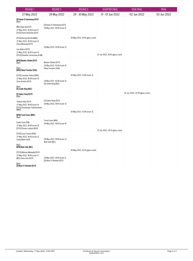 The women’s draw will also include some entertaining matchups that will put some of the top seeds to the test against promising young talents from around the world. Egypt’s Salma Hany (world no. 7) will face the winner of the match between Egypt’s Yathreb Adel (world no. 38) and Malaysia’s Sivasangari Subramaniam (world no. 20.) This will undoubtedly be an interesting match-up as the three competitors attempt to break through and climb to the top of the world rankings.