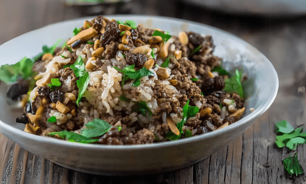 Rice is the natural complement to any meat dish, but for this Eid al-Adha, we want to spice things up. With that, we introduce to you Lebanese Hashweh rice, adorned with meat, toasted nuts, and raisins and packed with aromatic flavors.