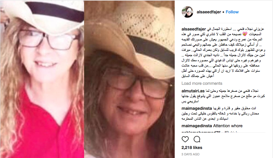 This came after social media’s angry response to Fajr tweets about Najlaa’s recent photos that naturally showed her age ,saying “Dear 70’s beauty legend Najlaa Fathy, a sincere advice, don’t post current pictures of yourself” carrying on further “and let your audience remember you from your old pictures, or even ask your colleagues how they maintained their looks and follow their advice, and come back with a better look that resembles the old you”