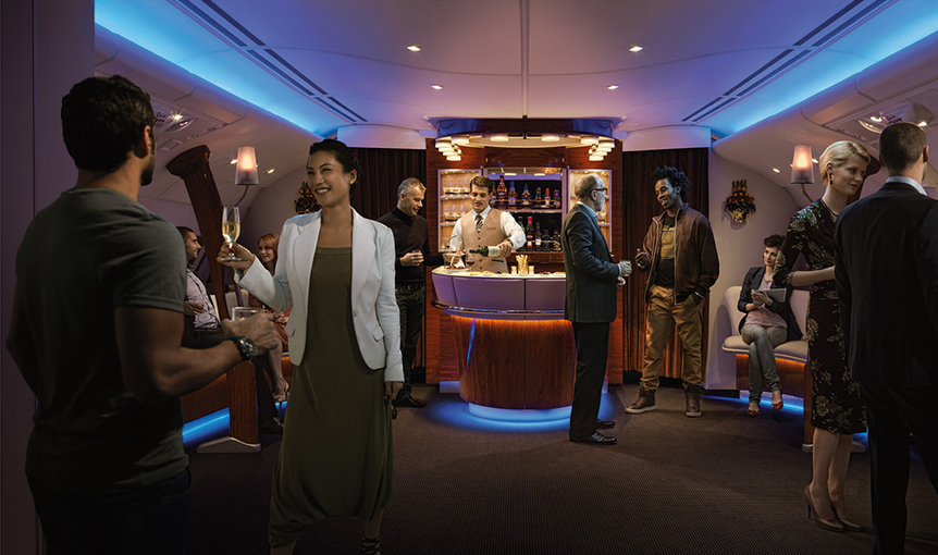 Starting from July 2017, Business and First Class passengers will be able to stretch their legs at the horseshoe-shaped bar which will have more seating space with a new chair arrangement along the windows on both sides of the bar. A maximum of 26 passengers will be able to hang out in the space and there are eight chairs to chillax and socialize in.