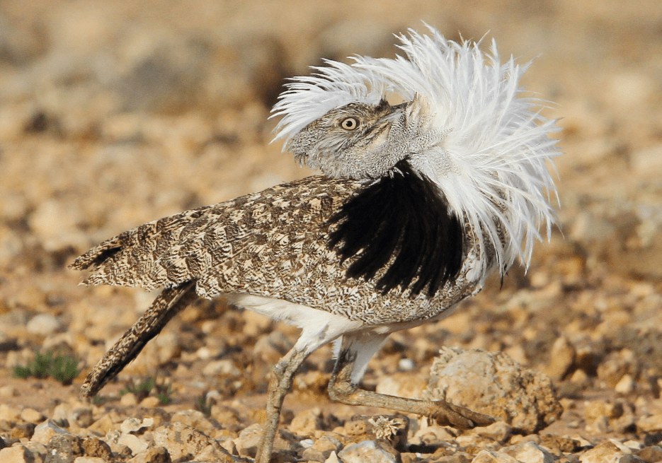 The houbara bustard holds cultural significance in the MENA region, particularly in traditional falconry. Overhunting and habitat degradation have led to significant population declines.