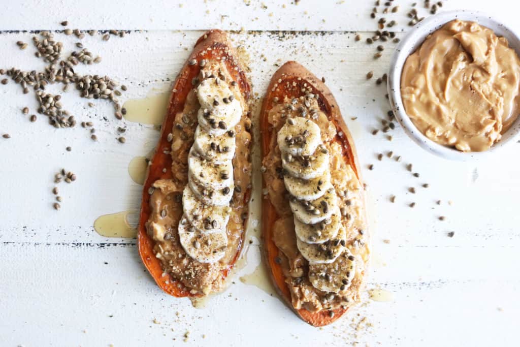 Bring out your favorite nut butter spread and toast, we’re doing a remix on peanut butter and jam. Jam, usually preserved and overloaded with sugar will have you itching for water. Instead, use almond butter and bananas. This match made in heaven is more forgiving and way filling.