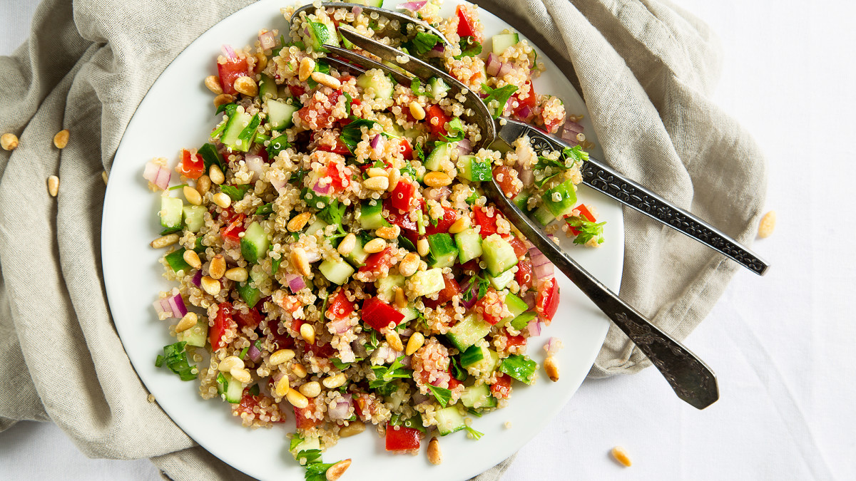 This superfood party in a bowl is nutrition on a plate. Since it’s hard to eat clean in Ramadan, this salad will keep you on track. The zesty salad can be topped with chickpeas for extra crunch and protein. Served cold, feel free to top it with your favorite veggies.