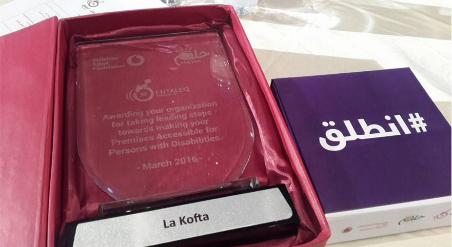 The journey with Entaleq started while La Kofta was still in the design phase. We designed our ground floor to accomodate anyone with a physical disability and using wheelchairs. They can access the restaurant, order from the counter, even sit at tables that have dimensions based on the standard requirements for people with wheelchairs. As for the rest of the restaurant, it is completely enabling to other types of disabilities as we agreed with the Entaleq team on printing the menus in brail format for blind people to be able to order without assistance.
