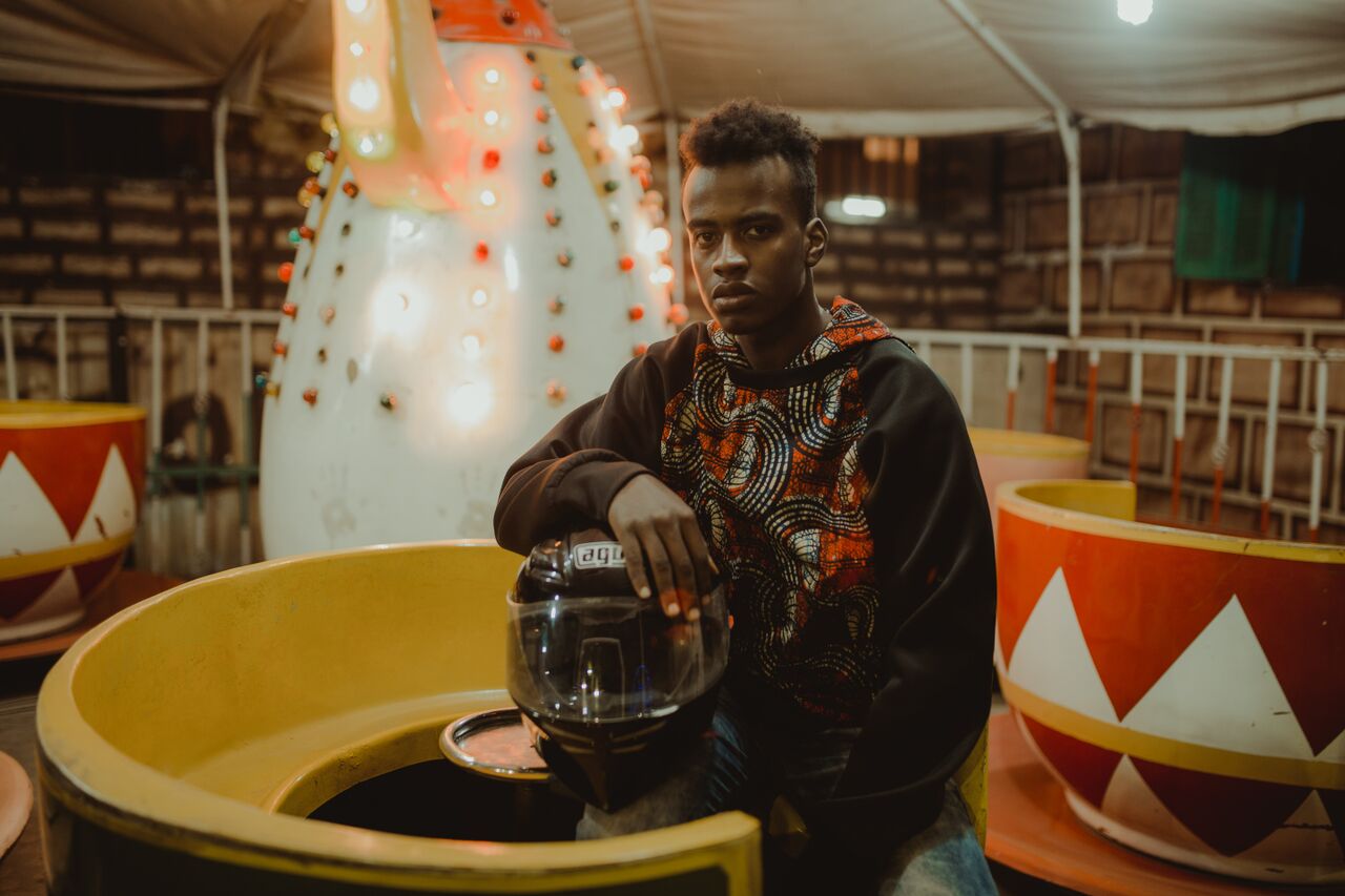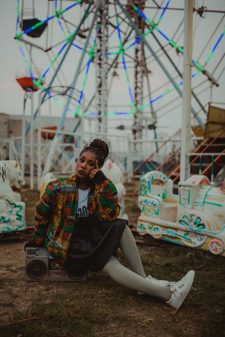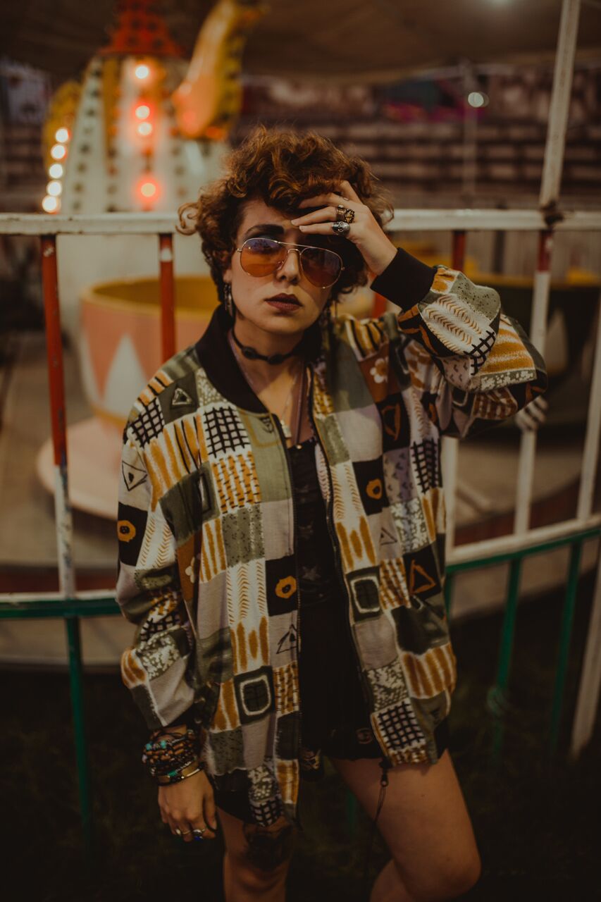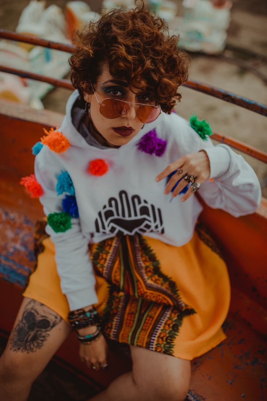 On the other hand, the photo shoot perfectly complemented the designs and the concept behind them. To our surprise, Shandaweely did the art direction herself, we’re talking about a multi-talented artist here. The shoot took place at an old amusement park in El Warak, where she gave life back to the abandoned setting. The location served the purpose as it was once a place full of youth and energy.