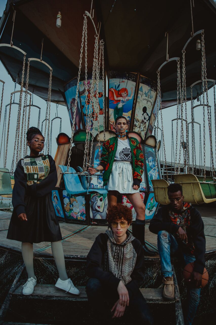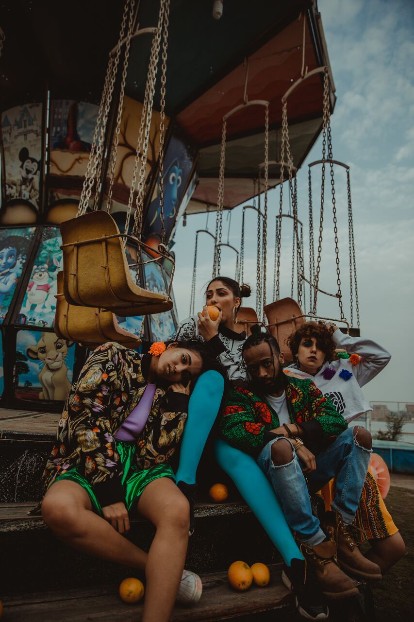 On the other hand, the photo shoot perfectly complemented the designs and the concept behind them. To our surprise, Shandaweely did the art direction herself, we’re talking about a multi-talented artist here. The shoot took place at an old amusement park in El Warak, where she gave life back to the abandoned setting. The location served the purpose as it was once a place full of youth and energy.