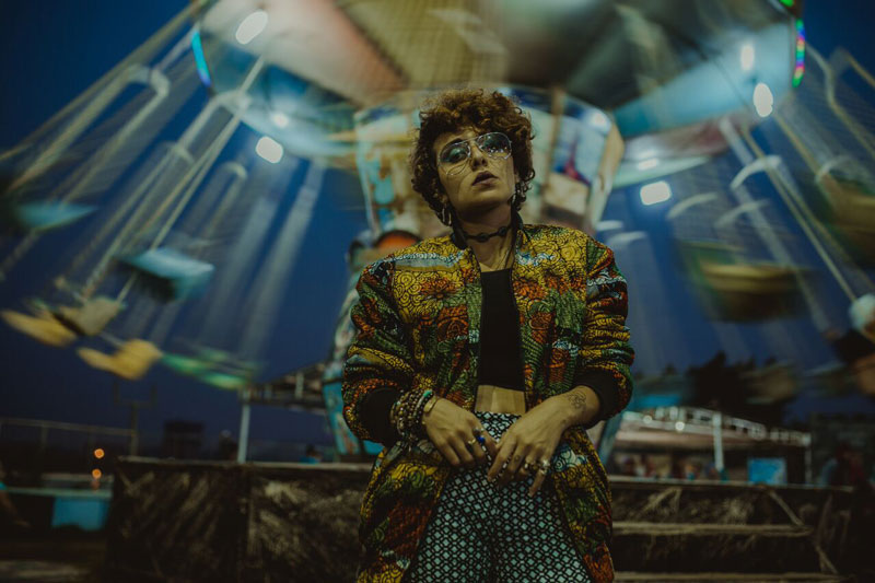 Shandaweely who dressed many celebrities such as Souad Massi, Dina El Wedidi and Cairokee’s Sherif El Hawary, got inspired by the wilderness of AfroPunk festivals. She put together the festivals’ elements; the rebellious youth, the expressive music and the vibrant colors, and came up with something extraordinary. This could be easily seen as she incorporated this with every single detail of her designs. The bright colors, the patterns, even the choice of fabric; they all shout AFROPUNK!