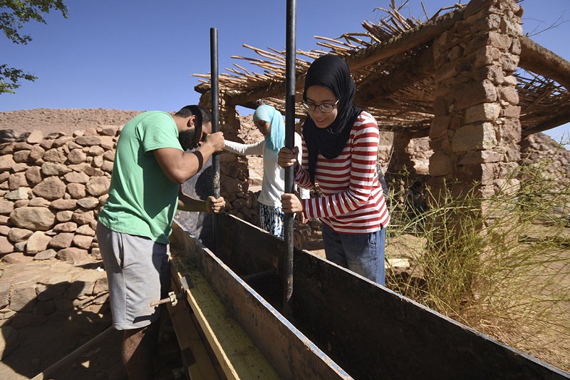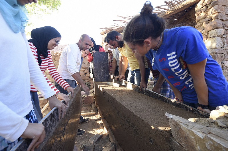At the beginning of most of the project we undertake, especially the projects targeting the community development approach, we recruit a team of students; we deliver a series of sessions and workshops discussing several topics such as earth construction techniques and environmental design. The reason why we recruit students and not professionals is that our model is built on a collaborative approach, where we try to bring together different stakeholders of the community and each one supports with his part to complete the project. The students’ role is to use their effort and time to contribute to the project by working on the designs and supporting in the construction phase, besides they get to learn about new topics that are rarely discussed in their university curriculum.