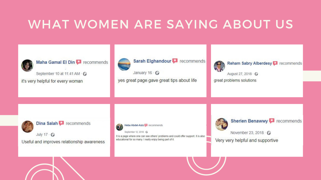 We try all the time to add more value to help more women, but I always say that this group helped influencing women in its simplest form to give them a safe place to vent out, speak up and find support! Support could be by a piece of advice, help from someone who passed through the same problem to give her hope that all this will pass, or even just a virtual tap on the shoulder and telling the confessor that we are all praying for her. So it’s a huge 150,000 women support group to discuss topics you can never discuss with your friends, mother or anyone.