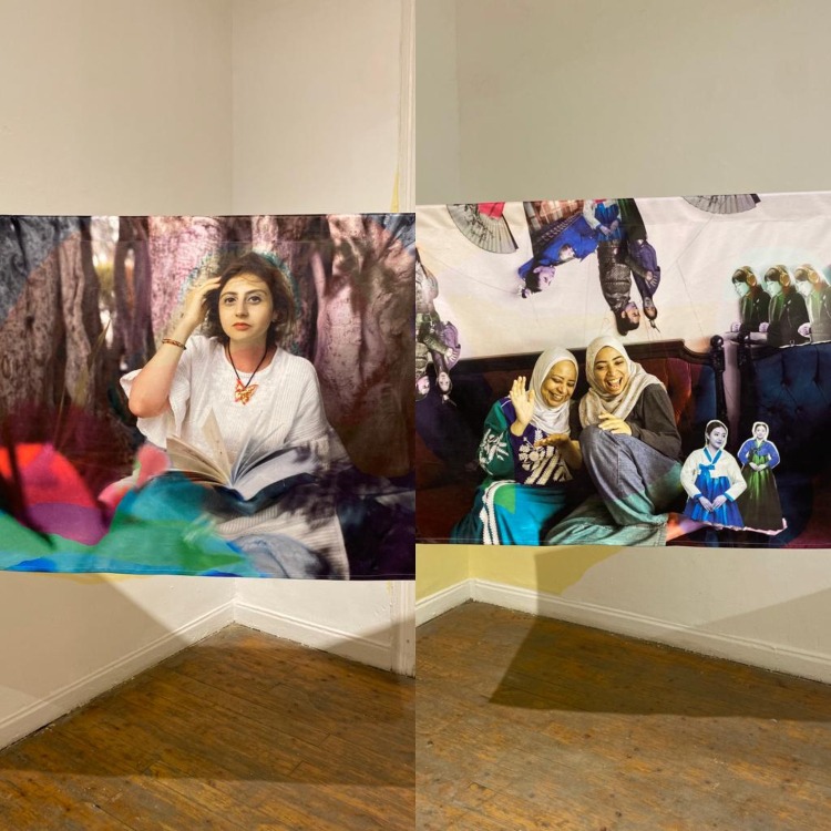 One of the elements that stood out to me when examining the colorful photographs was that they weren’t printed on paper, but rather pieces of fabric. When I asked Khalifa what was the thought process behind this choice, she said, “I wanted to add this almost interactive layer to my work where you become part of their malakot. As you saw from the exhibition, the fabric is quite weightless, alive. So with every movement, it’s like we become part of their space.”