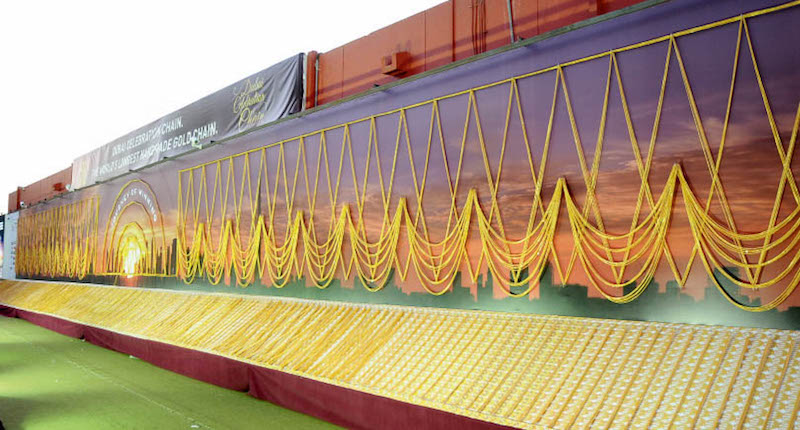 The chain is 5 kilometers long and weighs no less than 240 kilograms and has over 4 million links, which took 100 craftsmen over 45 days to produce.