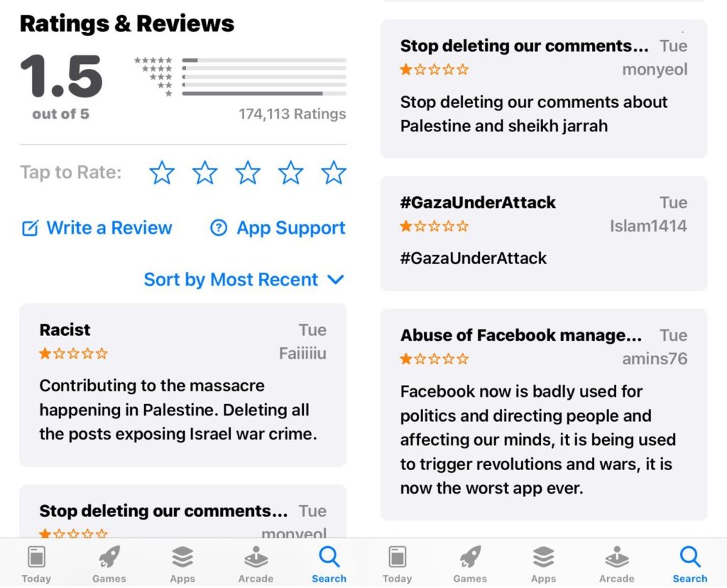 Arabs and supporters of Palestine have raided the App Store and Play Store. They’ve given Facebook reviews that saw a massive drop on the App Store go from 4.9 down to 1.5. Reviews that rated FB with one star have been a lot higher than all other rates combined together for FB on the App Store. Social media users have expressed their opinion on the matter, saying that FB has been suppressing the freedom of Arabs on their platform.