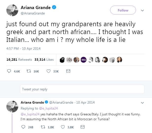 When her fans kept asking which part of North Africa, she couldn’t state where exactly from, so she said she might either be Moroccan or Tunisian, which sent her fans (and those from the region) into a frenzy. While there aren’t any confirmations about the news besides Ariana Grande’s tweets, we’re going to have to take her word for it!