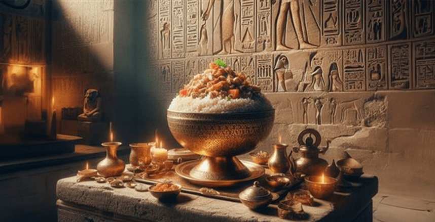 Legend has it, an Egyptian priestess named Kara made a next-level feast: she roasted a sheep, stuffed it with bulgur and onions, topped it with eggplant, poured broth and vinegar over crumbled bread, and served it to celebrate a sacred feast. Girl was basically the first food influencer.