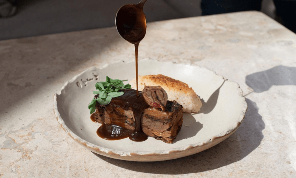 Meet their exquisite dish of braised short ribs drizzled with a vinegar glaze and served with a side of morel mushroom and onion confit.