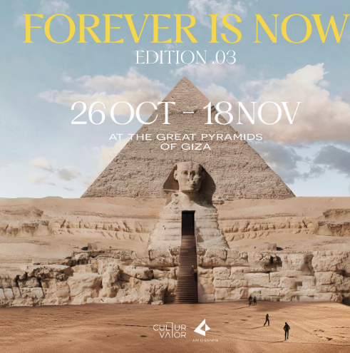 Art D’Egypte, in collaboration with Culturvator, has officially announced the highly anticipated third edition of the internationally acclaimed art exhibition, Forever Is Now. Set against the historical backdrop of the Great Pyramids of the Giza Plateau, this extraordinary event will captivate art enthusiasts from around the world. Scheduled to take place from Oct.26 to Nov. 18, this edition promises to be a groundbreaking celebration of art and history.