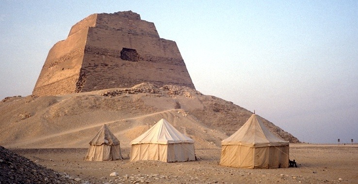 Built during the reign of Egypt’s Third Dynasty, Meidum is thought to be the second pyramid to be constructed after Djoser’s step pyramid. This pyramid was the transitioning step between the stacked mastabas to true pyramids such as the ones at the Giza Plateau.
