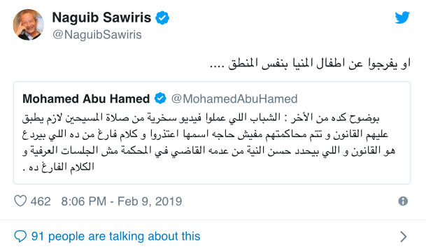 Egyptian business mogul, Naguib Sawiris, took to Twitter to ask for equal treatment and release of the Coptic students who were sentenced five years in jail for mocking Muslim prayers in another viral video that was posted back in