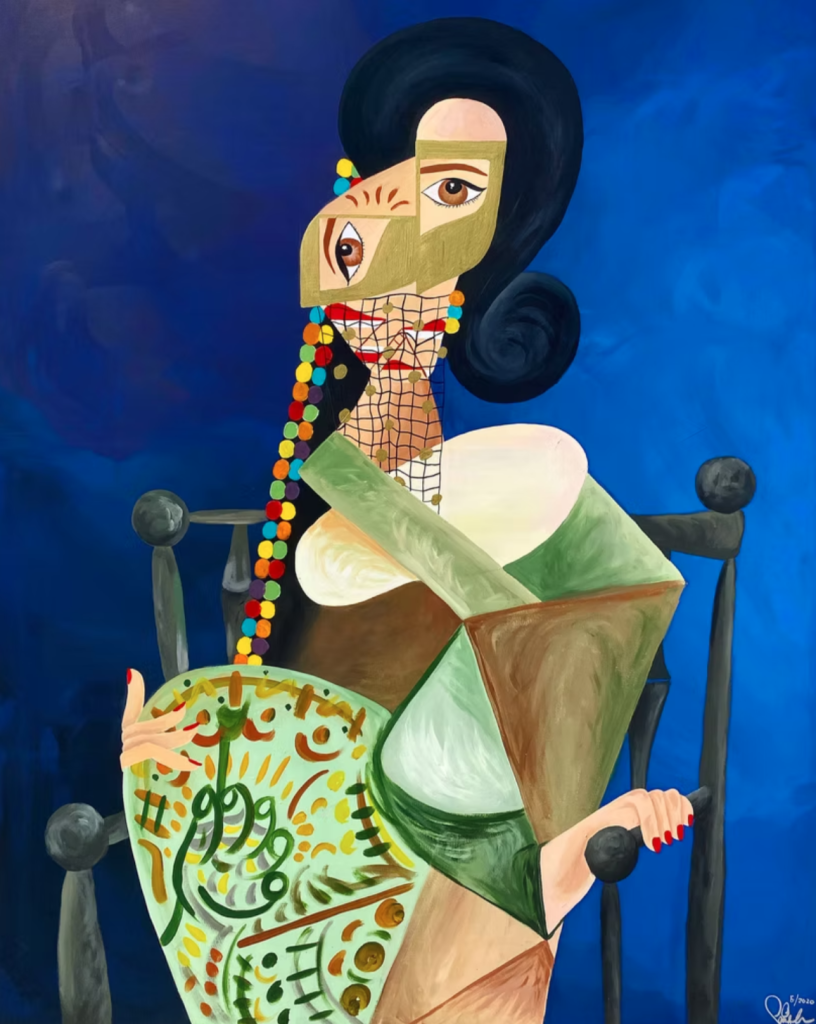 As a child, Alkheriji was fascinated by Picasso’s ability to break down reality and rebuild it. “I copied Picasso to understand how he fractured form and still told a clear story,” he says. “That process—deconstructing and rebuilding—felt exactly right for expressing my own culture in a new way.”