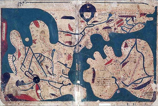 This map was displayed on “Old Manuscripts and Maps from khorasan” by Abu Zaid Ahmed ibn Sahlal-Balkhi (850-934). Abu Ziad is a Persian geographer who was a disciple of al-Kindi and also the founder of the “Balkhī school” of terrestrial mapping in Baghdad.