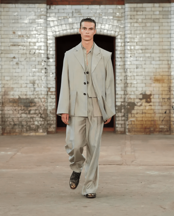 The brand’s designs, known for their social conscience and refined tailoring, included the Rising Sun capsule collection, which features embroidered Arabic phrases symbolizing hope and renewal.