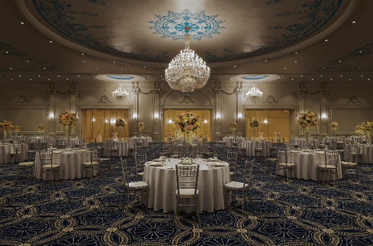 Located inside the hotel, the floor-to-ceiling windows of the Turquoise ballroom offer an aesthetic appeal and bring exquisite outdoor views and bright daylight inside. This ballroom is suitable for hosting the most glamorous events and gala dinners where you can welcome your guest in its spacious foyer that features luxurious and classic furniture bordered with golden ornaments, vintage antiques, lavish marble floors, and a comforting combination of blue and white hues.