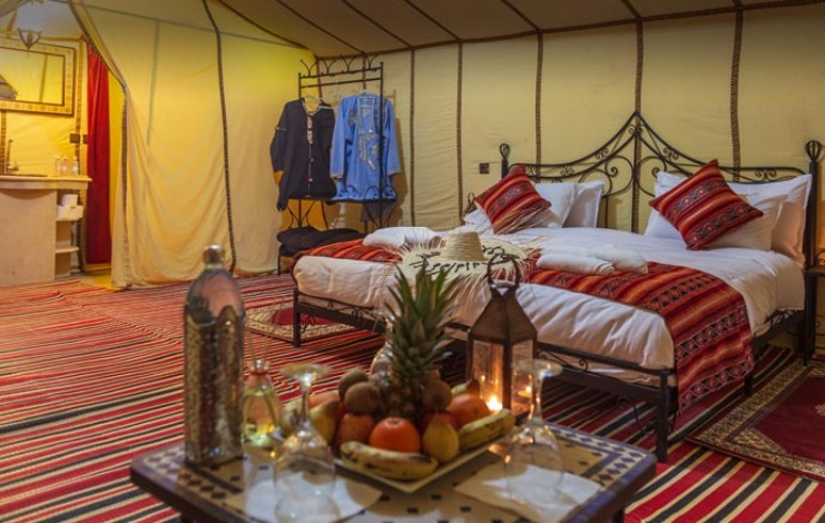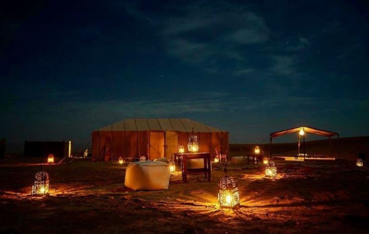 The site also includes a separate tent that houses the restaurant, which offers different dishes from the local cuisine. As for activities, there are a bunch of them people can enjoy, including safari, desert photography, camel riding, star gazing, sandboarding, buggy rides, and sand hammams, for a diverse adventure.