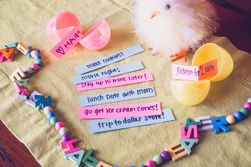 Reverse the roles this year when searching for eggs. Let your kids this time fill Easter eggs with pieces of paper written on them chores they want to skip for a day or to stay up late an extra hour. Have the kids hide the eggs for you to go look for them! Any egg that is not found in a particular amount of time is the one kids would ultimately get to keep.
