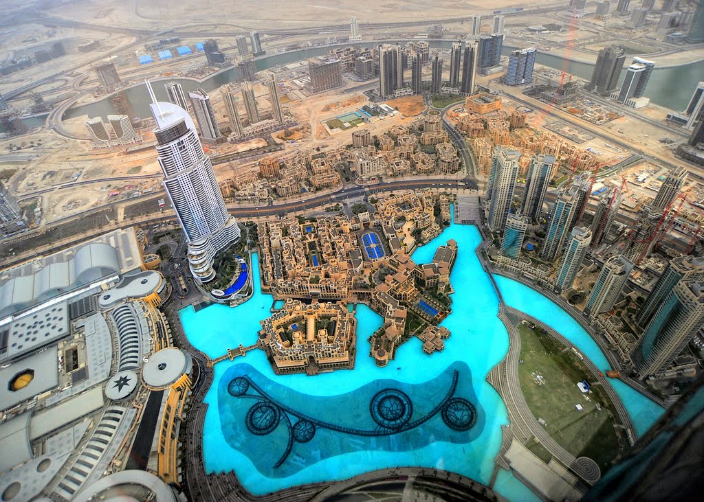 Burj Khalifa sits on a man-made lake which wraps around the building and offers dramatic and breathtaking views of the building