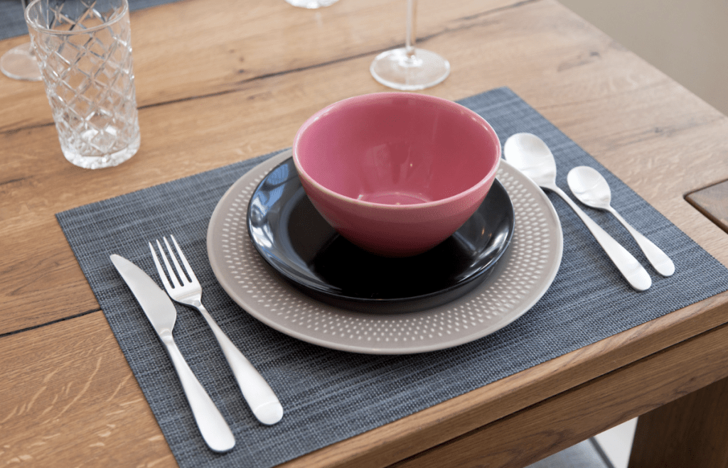 Place plates and cutlery on each side, and arrange them in an appealing way.