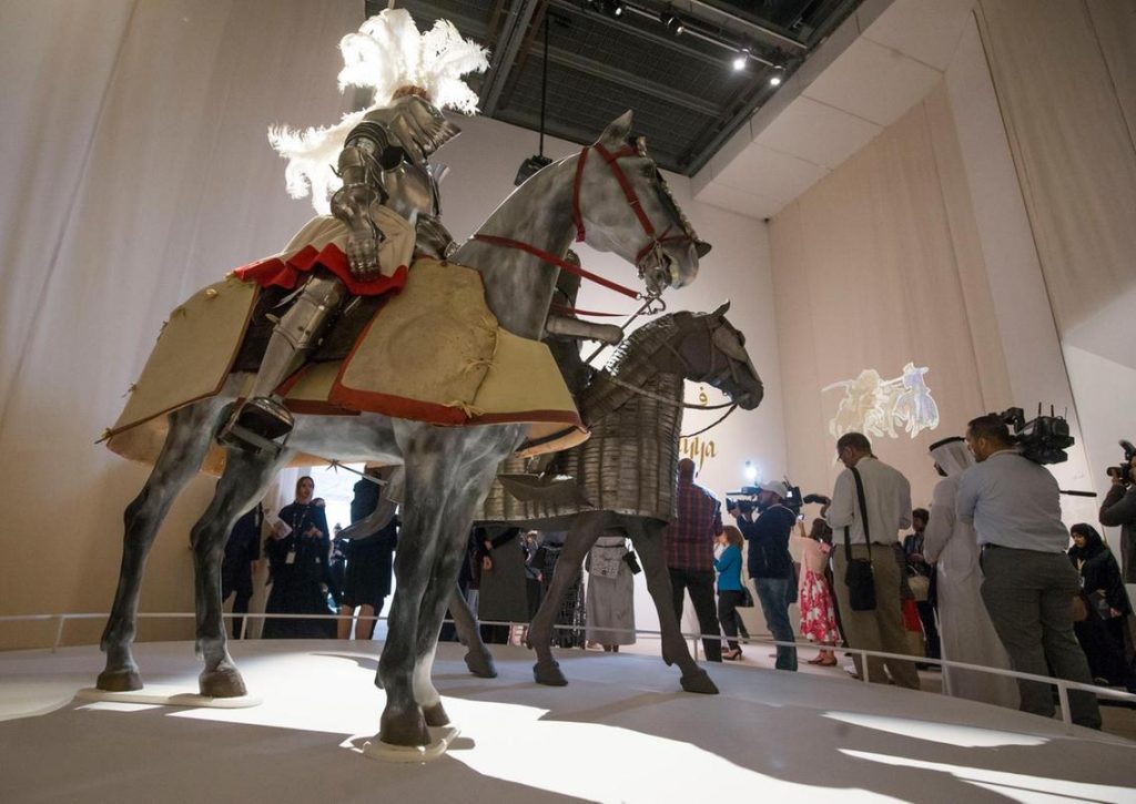The exhibit is divided into three sections: horse riding, warfare, and the daily lives of knights, bringing in elements from both cultures.
