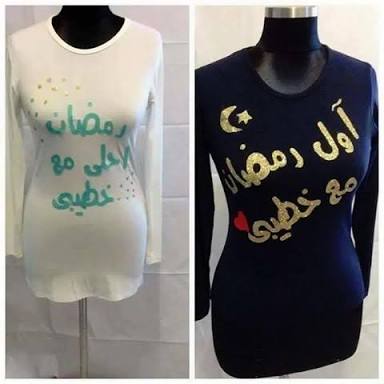 Not just any t-shirts and/or galabeyas, but ones that have things like “awel Ramadan ma3a 5ateeby” (the first Ramadan with my fiancé), or “awel Ramadan ma3a gozy” (the first Ramadan with my husband), and “awel Ramadan fy betna” (the first Ramadan in our home), printed all over them. This, again, is a trend that has emerged this Ramadan (2017).