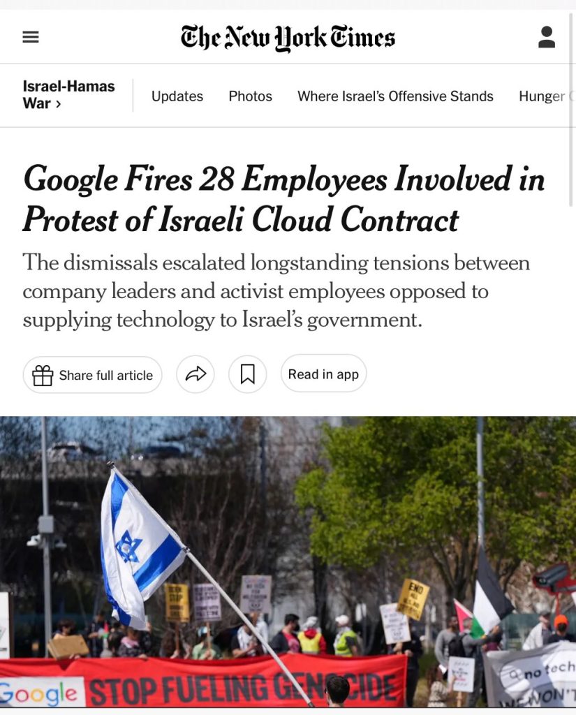 Google, owned by Alphabet Inc., fired 28 workers who protested against Project Nimbus. This project involves providing the Israeli government with AI and cloud services through a $1.2 billion joint contract with Amazon.com Inc.