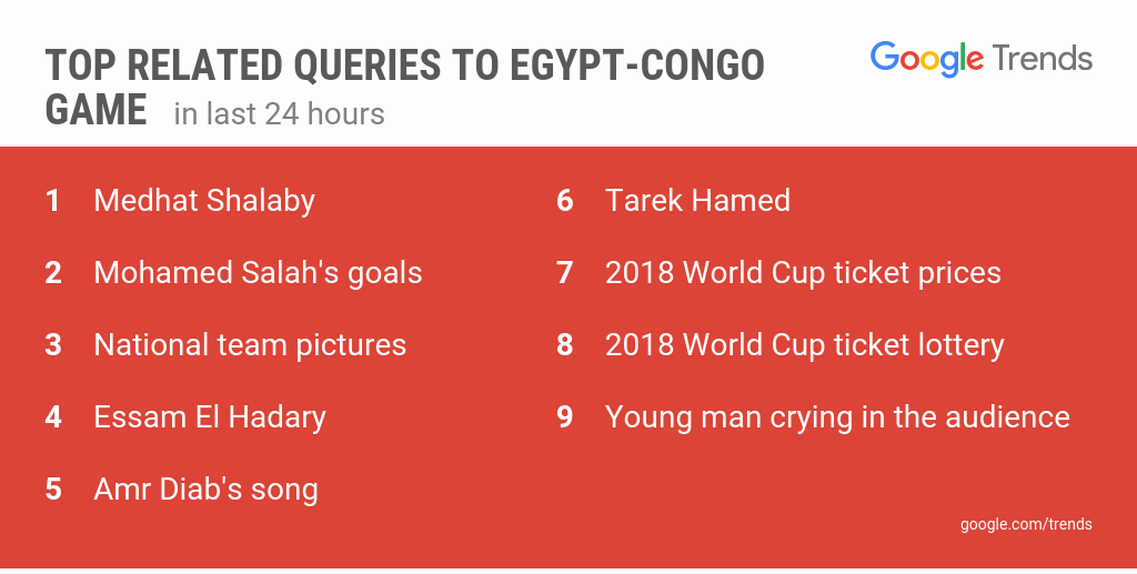 Google just released a list of the most trending searches related to the historic Egypt/Congo match that happened last night, and guess what topped it?