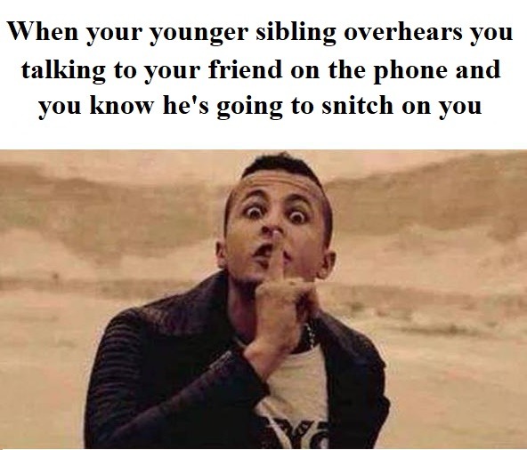 It’s like you’re living with the police. They listen to everything you say, from your other siblings, to your friends. Additionally, they ask all kinds of questions regarding things that don’t concern them. They threaten you by saying they’ll snitch on you to your parents. There may be times when you have to reverse the situation, and scare them off instead. Not to mention the potential blackmailing that would ensue…