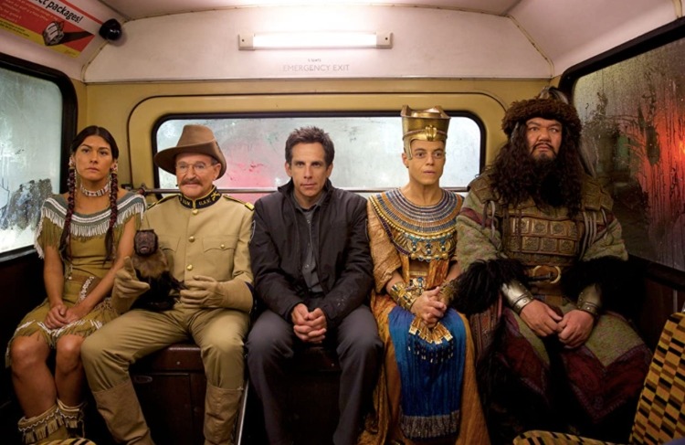 Rami Malek shooting a scene with Ben Stiller & Robin Williams in Night at the Museum: Secret of the Tomb.