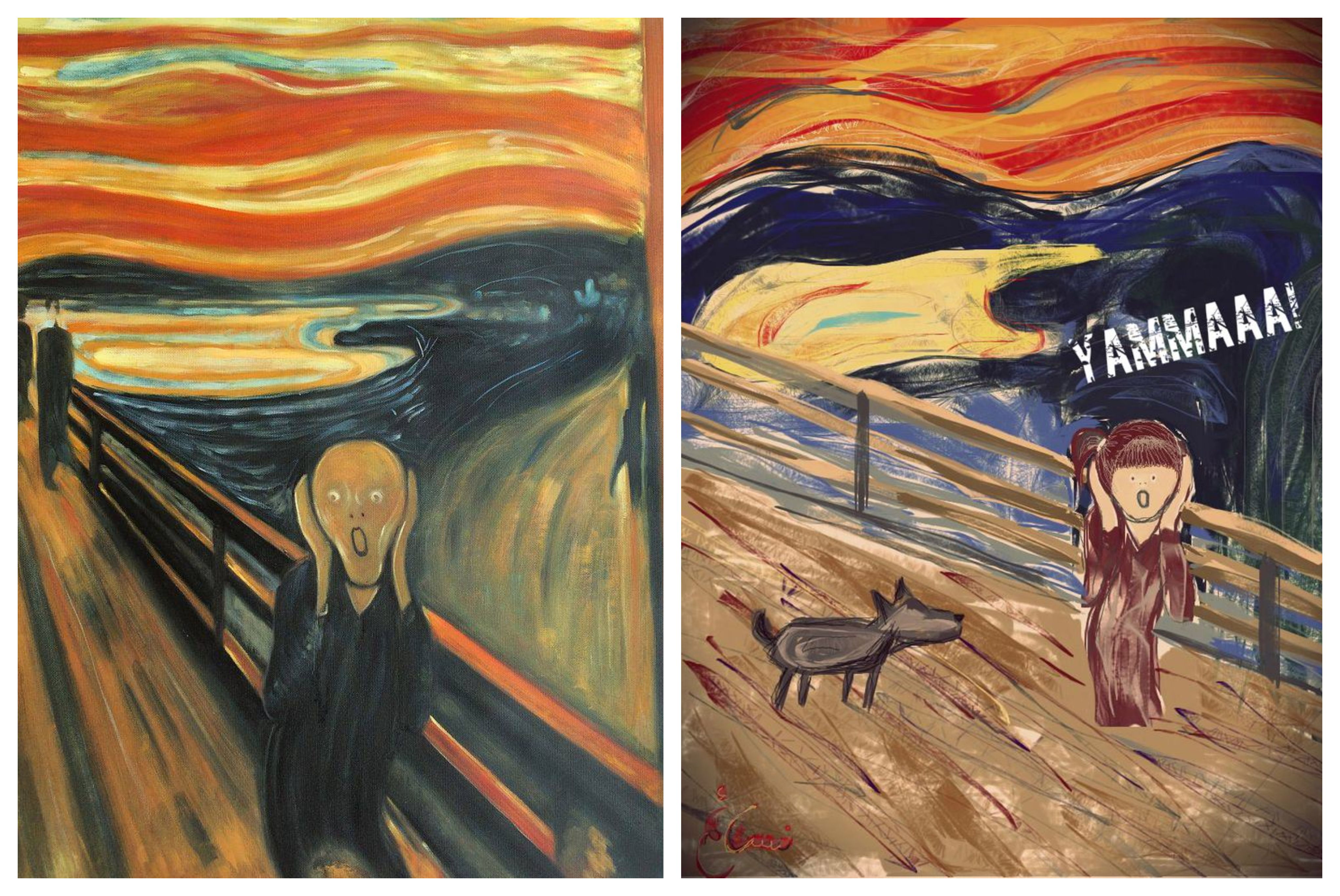 It’s not very hard to tell that most of the internationally famous paintings are painted by non-Arab artists and present non-Arab topics. Our incredibly talented Arab artists used their sense of humor and their pledges to the Arab causes to re-paint these highly praised paintings with an Arab twist.