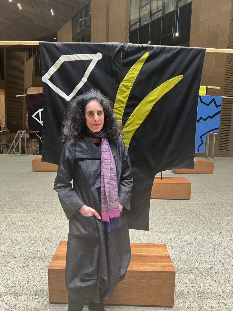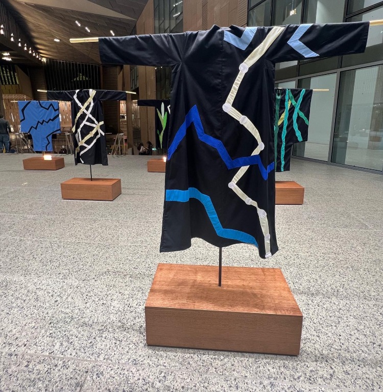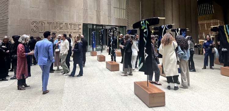 A vibrant display showcased across the museum’s top floor highlighting 28 various costumes with intricate geometric details. “They are made out of Egyptian cotton and created alongside the help of Egyptian tentmakers, relating to the heritage, to the nature of Egypt.… it’s about the sun, the earth, the water, and air but in a very abstract way,” Hefuna said.