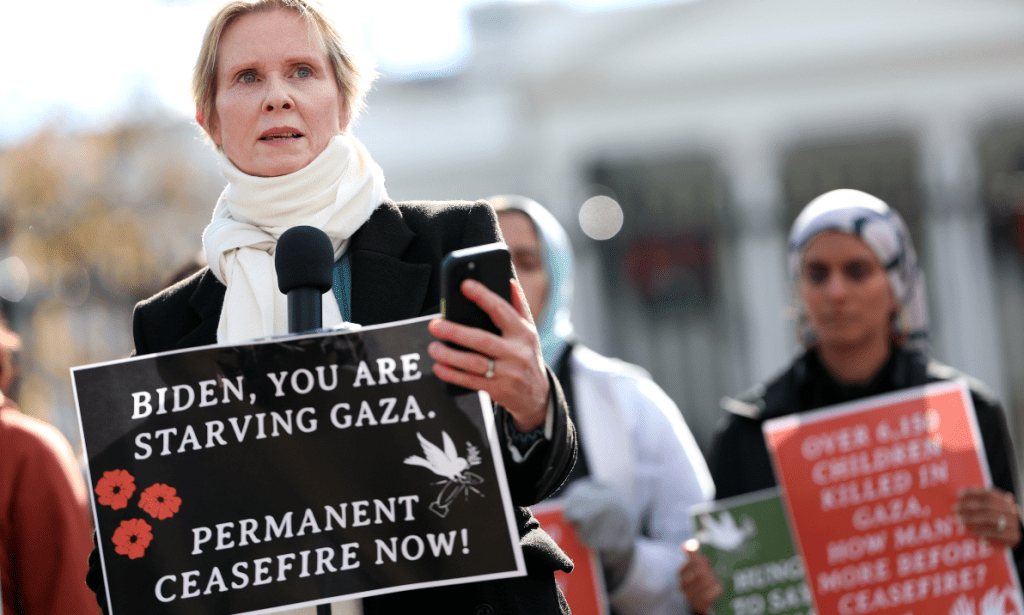 Since Monday, standing outside the White House with banners and a spirit of solidarity, American actress Cynthia Nixon as well as several state lawmakers and Palestinian rights supporters began a still ongoing five-day hunger strike. Nixon joined the strike for a duration of 2-days as she needed to return to New York on Tuesday for work commitments. The strike is all in an effort to urge US President Joe Biden for a Gaza ceasefire and an end to the ongoing violence and destruction that plagued Palestine since October 7.