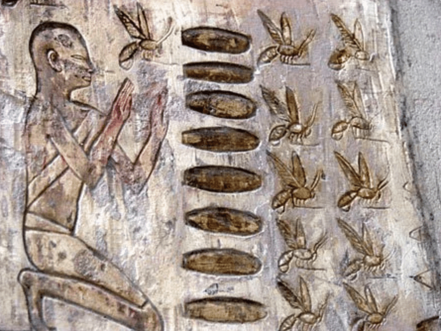 Over 5500 years ago in 3500 BC, due to their religious significance and the luxuriousness of the honey they produced, bees became the emblem of the pharaoh of Lower Egypt. Some ancient Egyptian rituals also show that at points it was believed that a person’s soul carries on in this world after death in the form of a bee. As such, in ancient Egyptian mythology, bees often represent the cycle of life and death through resurrection and it is said that the sun god Ra created bees from his tears falling to earth. The honey itself also had deeply religious and ritualistic importance to the ancient Egyptians, as priests would place spoons of honey in the mouths of statues of gods and pharaohs as an offering. In royal tombs, archeologists have even found jars of honey, which are thought to be for the dead to enjoy in the afterlife. Amazingly, due to honey never going off, the jars of honey that were found in Tutankhamun’s tomb and others are technically fine to consume.