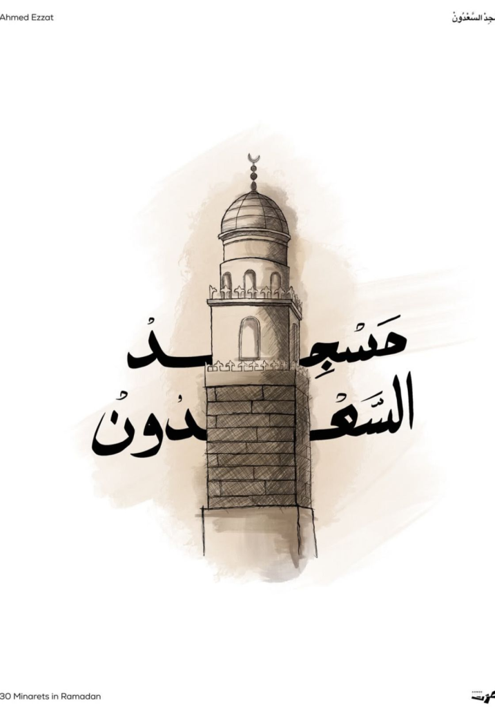 Ahmed’s current project, 30 Minarets in Ramadan, is a love letter to Islamic architecture and the spiritual rhythm of the holy month. Through delicate sketches, he captures the unique character of each minaret — from the elegant curves of Riyad Alsaliheen Mosque to the towering presence of Al Saadoun Mosque and the intricate details of Sheikh Abdullah Fouad Mosque.